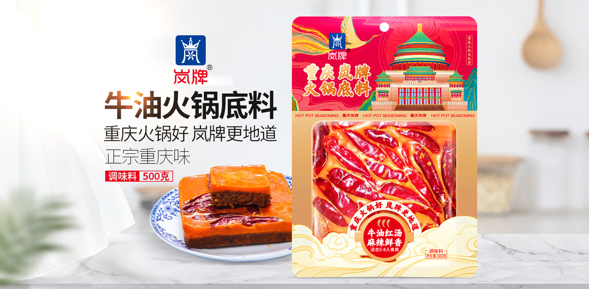 岚牌·永远坚持使用老重庆在五味中求平衡的调味原则,使其具有油不腻嘴,辣不刺喉,麻不伤胃,香醇浓郁,回味悠长的重庆老火锅风味。在家吃火锅,放入矿泉水和岚牌火锅底料,就可享受地道的重庆老火锅。——岚牌火锅在家烫,久煮留香味更长!